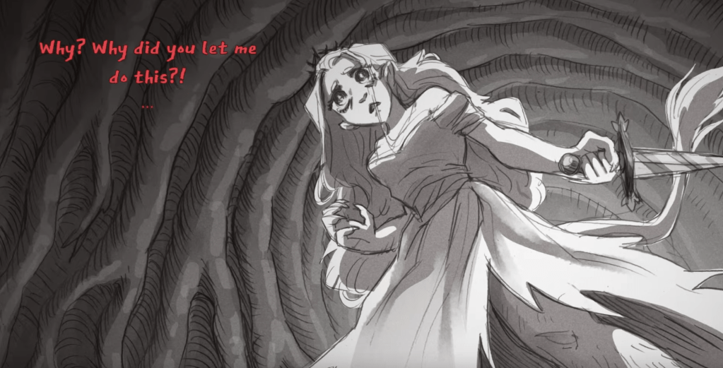 Finally, you bury the blade in her chest. She finally admits it, it doesnt seem she wanted any of what she’d suggested herself.