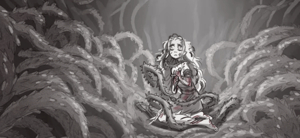 Still though, easily one of my favorites has to be the thorn princess. If you decide to go into the basement without the blade, but when the blade is dropped down by the narrator you decide to betray the princess rather than free her, she becomes distrustful. In the second chapter, the cabin is made up of roots, and the princess?